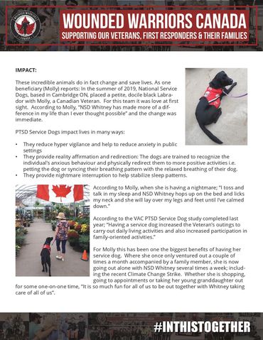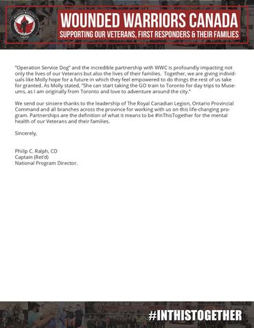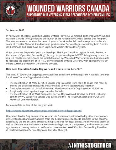 "Wounded Warriors Canada is a national mental health service provider utilizing clinical best practices and evidence-based care to create an environment of compassion, resiliency and hope for Canada’s Veterans, First Responders and their families."